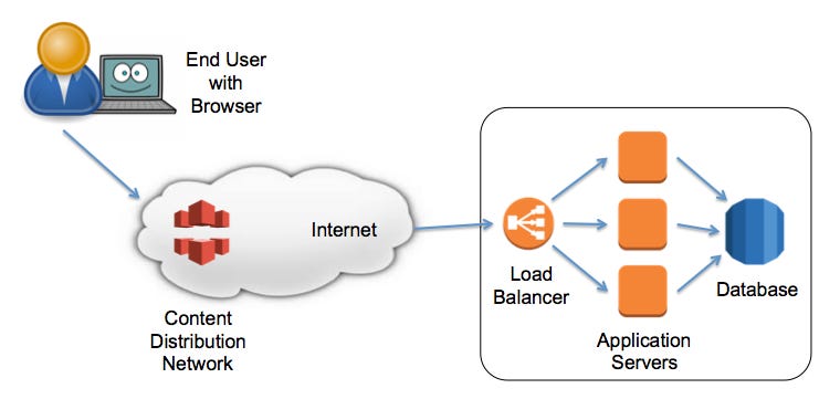 Application Servers — The brains of the web application, responsible for interpreting HTTP requests, performing business logic, querying the database to retrieve persistent data, then rendering the appropriate HTML response page.